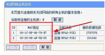 在左边的主机状态里记下所有连接的客户端的信息
