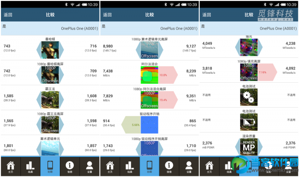 GFX Bench 3.0 跑分,小米手机 4 与配置相同的一加手机相比稍逊色。
