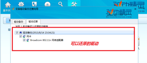 第五步:既然备份了驱动那么就需要还原驱动,同样在百宝箱中还有还原驱动,我们点击还原驱动选择相应的驱动就可以还原成功。