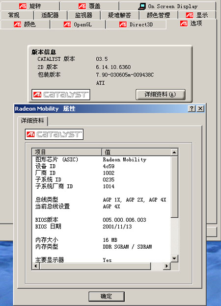以我的ATI MOBILITY RADEON7000为例,加载新驱动和控制程序后,选项中多了屏幕旋转功能(没啥用处的),面板中的文字都变成了简体中文,看起来方便多了。据说,MOBILITY RADEON7500或更高版本在安装新驱动后,不仅可以支持Directx 9.0,还加强POWER PLAY功能,能够更省电。看来,新驱动的威力果然名不虚传。