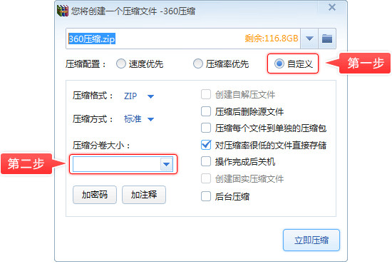 经常在网上下载的压缩包都是分卷的,尤其是论坛为了赚点积分一个包分好几个卷来压缩,360压缩一个文件时,在【您将创建一个压缩文件】界面,点击在【压缩分卷大小】下拉框输入合适的大小即可。