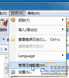 依次点击“选项”——“管理压缩配置”,打开好压的管理配置窗口: