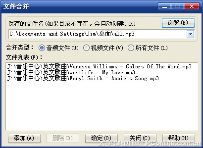 在网上很多视频都是分段提供,无论管理还是传递都不方便。其实我们同样可以通过“好压”的合并媒体文件功能,对其进行合并。操作时只需点击“工具”菜单→“合并音频/视频文件”命令,将待处理文件添加到窗口之中。这时“好压”就会自动根据具体文件判断出“合并类型”,并最终生成一个完整的媒体文件。值得一提的是,如果被合并歌曲码率不同,“好压”将自动按照最低的码率进行编码,不过由于各方面的原因,“好压”暂时还无法支持.rm、.rmvb等格式的合并。