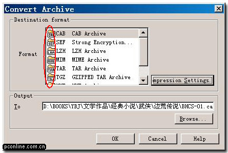 用ACDZIP打开你的压缩文件,然后点击工具栏的convert图标,在出现的窗口中,format栏可以选择你要转换到的压缩格式,output to一栏可以输入你转换文件的存放路径,也可以点击bowser按钮自己选转换文件的存放路径。点击compression seting在出现的窗口中可以选择将转换的压缩包分盘存放,选择压缩方法等,一般没有特殊要求不用更改,最后点击ok按钮即可完成压缩文件的转换。
