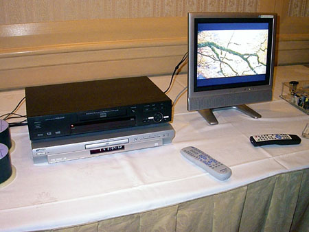 另外展出的GV-XVD/PCI卡能够把多种格式(MPEG-1/2、AVI、WMV、MP3、WMA、WAVE)的声音及图像文件通过编码转换为XVD形式,声音文件「XVD Audio」采样频率32/44.1/48kHz,支持采样率32/48/64kbps。并能对外部输入的信号进行录像。S端子输入,分量合成信号输入,同轴输入。