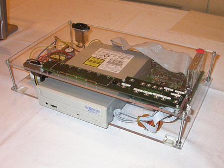 这台黑色的设备是利用现在的DVD机改装的能播放XVD的机器