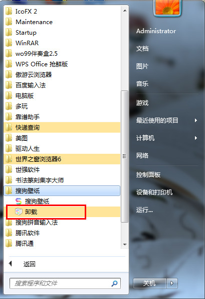 方法二:在开始菜单中找到搜狗壁纸点击卸载