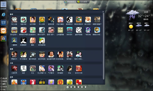 打开360安全桌面,点击进入全屏版,眼前一亮有木有!界面漂亮大气,第一印象就让人一见倾心。然而,最让人兴奋的是新增的如同iPad一般的超炫滚屏效果!用户可以使用鼠标拖动,或者直接用滚轮就可实现向左向右的翻页滚屏。这一操作不仅仅在桌面界面下实现,在每一个分类文件夹中都可实现。